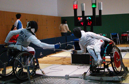 轮椅击剑运动是根据下肢残疾运动员(包括截肢, 脊髓灰质炎, 脑瘫和截瘫)的特点而专门设计的一项运动。对于观众来说,轮椅击剑运动最让他们感到与众不同的,就是比赛双方运动员的轮椅都固定在可调节轨道的框架上进行比赛。然而,尽管坐在这样的轮椅上,运动员只能自由移动他们身体的上半部分,但他们出剑的速度并不比健全运动员慢,甚至要更快。