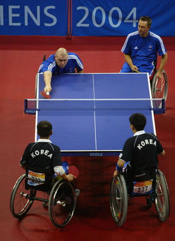 乒乓球残疾人比赛在比赛的类型上有站立和轮椅两大种类;在比赛的形式上有单打和双打;在比赛的项目上有团体和单项。