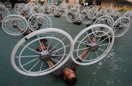 800名官兵,训练近2个月,每天训练时间不低于15个小时,有时甚至通宵达旦,“这是我们部队第一次参加大型团体操表演,很有挑战性。”参与“花窗舞者”训练的相栋指导员告诉记者,表演最大的特点是“齐”,也正是最难的地方。800个士兵必须动作一致,在5分零6秒的时间内做出各种图形变化,比如拼接出美丽的花窗图案,每一个动作在两个月的排练时间内做了不下万次,“同一个动作一天之内就要重复上百次。”