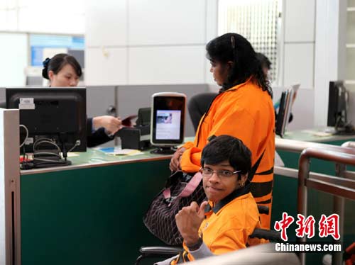 为快速为其办理入境边防检查手续,边检人员将轮椅运动员引导至亚残运动员专用通道,有条不紊地为运动员办理了检查手续。