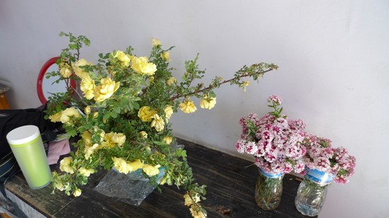 孩子们送的野花,黄色的像我们的月季和康乃馨的杂交,白色的叫狗蹄花,也就火柴花。