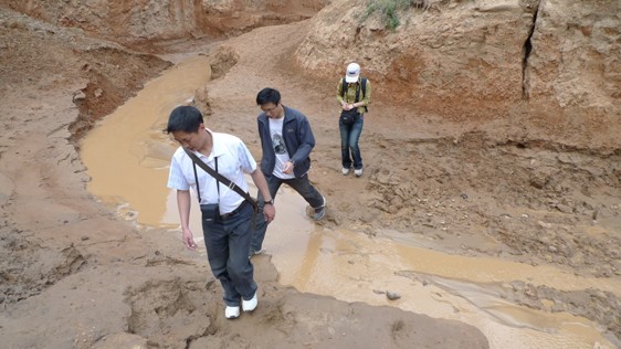 这就是悬崖下面的华尖河,平时不下雨的时候就这个水流,赵老师186CM的个子也要大步跨过去,对孩子们来说得助跑了,下过雨会很泥泞,也很滑。