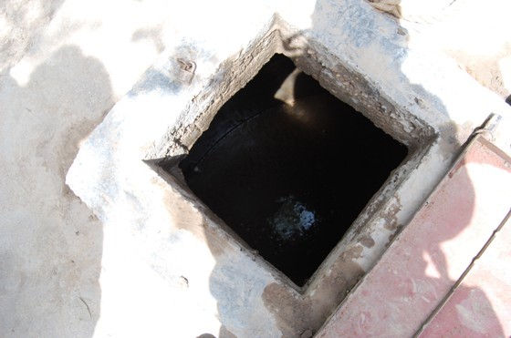 金山小学的水窖里依稀可以看到厚厚的一层漂浮物,根本无法正常饮用。