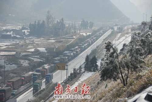 京珠北高速因道路结冰致拥堵 堵车30公里