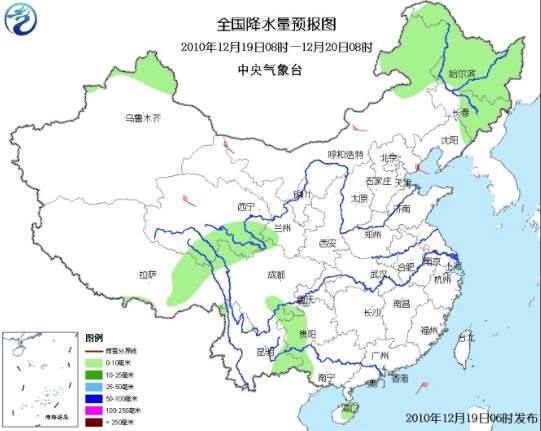 19日08时至20日08时,新疆北部、西藏东部、青海东南部、内蒙古东北部、黑龙江、吉林中东部、辽宁东北部等地有小到中雪或阵雪,其中,新疆北部偏北的局部地区有大雪;四川东南部、贵州西部、云南东南部、广西西部、海南中东部等地有小雨或阵雨。青海北部、甘肃西部、内蒙古大部等地有4~5级风。渤海、黄海大部海域、东海北部海域将有5~7级西南风转西北风;东海南部海域将有4~6级西南风转东北风;台湾以南海域、南海东北部海域、南海中部和南部海域将有5~7级东北风。
