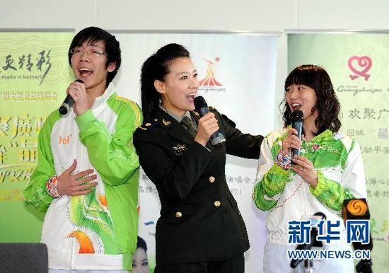 新华网12月18日报道12月17日,谭晶在广州“志愿者之夜:和谐之声——谭晶大型公益演唱会”新闻发布会上与广州亚运会和亚残运会志愿者代表杨雨菡、张程合唱亚运志愿者主题曲《一起来更精彩》。作为广州亚运会宣传大使、亚运志愿者名人堂成员、青年歌唱家谭晶将于12月24日晚在广州亚运会开幕式举办地海心沙广场,专门为广州亚运会和亚残运会的志愿者们举办“志愿者之夜:和谐之声——谭晶大型公益演唱会”。