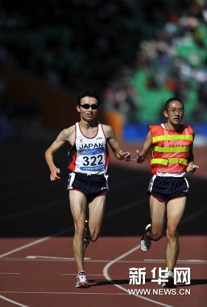 12月17日,在广州2010亚残运会田径项目男子10000米T12级决赛(无奖牌)中,T11级的日本选手和田伸也参加了这个级别的比赛,他跑完全程用时39分56秒73,全场观众为其加油鼓劲。这是一项没有奖牌的比赛,但选手们仍然坚持拼搏,体育精神在运动员身上体现得淋漓尽致。运动员们的坚持、专注让人感动,给人力量。