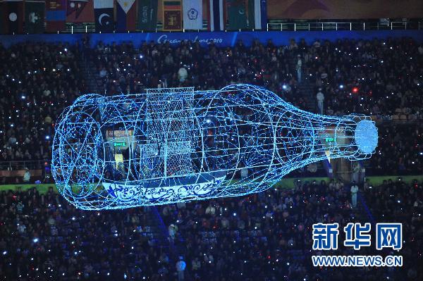 12月19日,广州2010年亚洲残疾人运动会闭幕式在广州广东奥林匹克体育中心举行。图为闭幕式文艺演出中的漂流瓶。 新华社记者郝同前摄