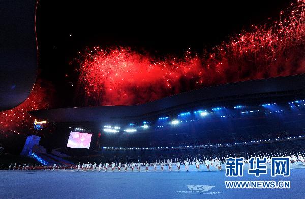 12月19日,广州2010年亚洲残疾人运动会闭幕式在广州广东奥林匹克体育中心举行。图为闭幕式上的焰火表演。 新华社记者姚剑锋摄