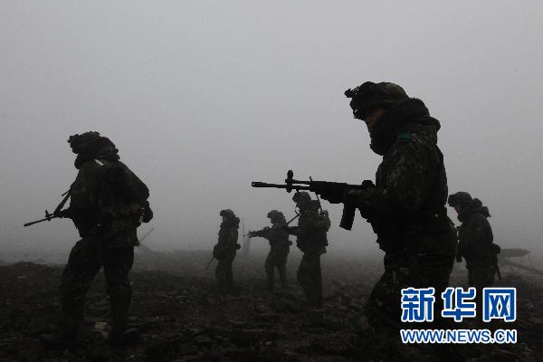 12月21日,韩国士兵在首尔西南方80公里处的海边巡逻。韩国国防部22日宣布,韩国海军22日起在东部海域举行为期3天的机动演习,陆军和空军将从23日起在抱川等地举行冬季联合演习。新华社/法新