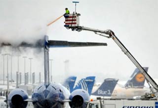 欧洲机场被大雪覆盖
