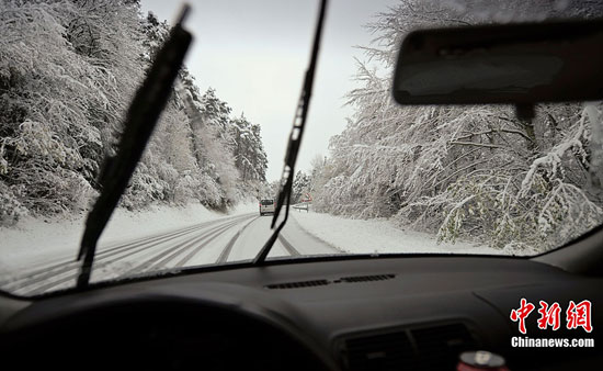 欧洲广大地区受到严寒天气侵袭,其中英国提早降下今冬第一场雪,是17年来最大的初雪,部分地区更刮起暴风雪,最低气温达零下17摄氏度,居民生活和交通大受影响。法国、比利时、荷兰、丹麦、德国、波兰以至白俄罗斯均出现暴风雪,预计西班牙北部也会下雪。图为11月28日,西班牙比利牛斯山脉降雪,司机小心驾驶汽车在雪地中行驶。