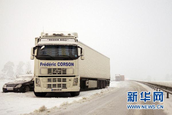 近日持续的冰雪天气全面影响了法国的航空、铁路和公路交通。 新华社/法新