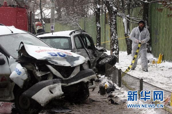 当天,布加勒斯特迎来今冬第一场大雪,结冰湿滑的道路造成一起救护车与轿车相撞事故,导致4人死亡,3人受伤。 新华社发(佩特雷斯库摄)