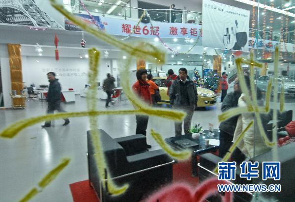 12月23日晚23时50分左右,顾客在北京一家汽车销售店选购轿车。当日,北京市人民政府发布治理交通拥堵新措施,引发市民新一轮汽车抢购潮,京城汽车销售店纷纷将营业时间延长至零点。 新华社记者 张宇 摄