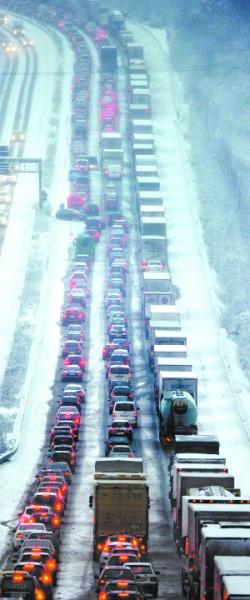 相比航空瘫痪,现阶段,德国公路交通的麻烦更大。19日晚整夜的大雪致使德国全境发生严重交通堵塞现象,在高速公路部分路段,数百辆汽车被迫抛锚。仅北莱茵-威斯特伐利亚州一州,自19日以来发生的公路交通事故多达1160起,至少70人在事故中受伤,11人伤势危及生命。