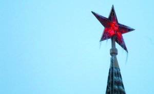 12月26日,莫斯科克里姆林宫塔楼上的红星挂着冰凌。