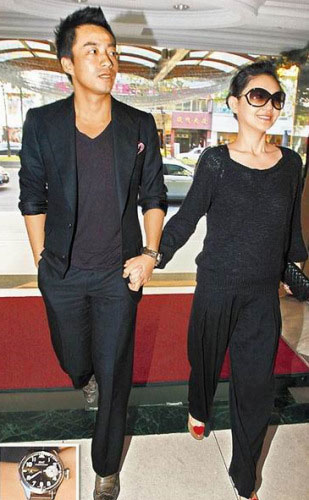 12/27 12:53pm 汪小菲(左)与大S到饭店就餐,十指紧扣秀恩爱,他戴要价108万元的IWC限量表(小图)。