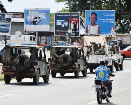 联合国维和人员在科特迪瓦首都阿比让街头巡逻