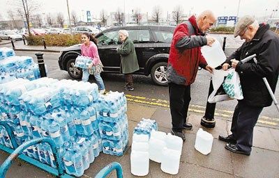 在首府贝尔法斯特,大批居民到水站排队取水,部分地区的康乐中心开放设施让市民洗澡。一名断水13天的居民说:“这是场恶梦,不能洗澡,不能吃饭,因为不能洗碗。”