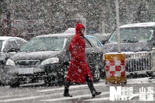 当日,山东威海又降大雪,并伴有5至6级大风,给市民出行带来不便。新华社发(于启波 摄)