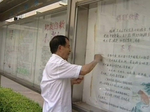 家住东钱湖旅游度假区钱湖人家社区的退休党员教师王善待,不计个人得失,从四年前起,一直承担着义务办社区黑板报的工作。