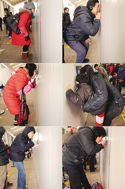 1月15日,旅客在宁波国际会展中心开辟的临时代售窗口前咨询和购票。黄宗治摄