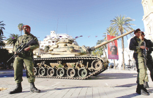 荷枪实弹的士兵在突尼斯街头巡逻