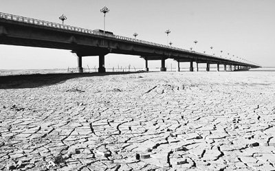 1月15日,黄河河南温县段河道南岸,大片河床裸露龟裂。徐宏星摄(人民图片)