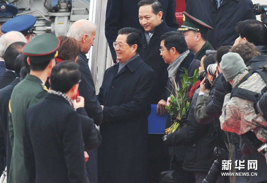 当地时间16时许,胡锦涛乘坐的专机抵达华盛顿安德鲁斯空军基地。美国副总统拜登等在机场热情迎接胡锦涛。