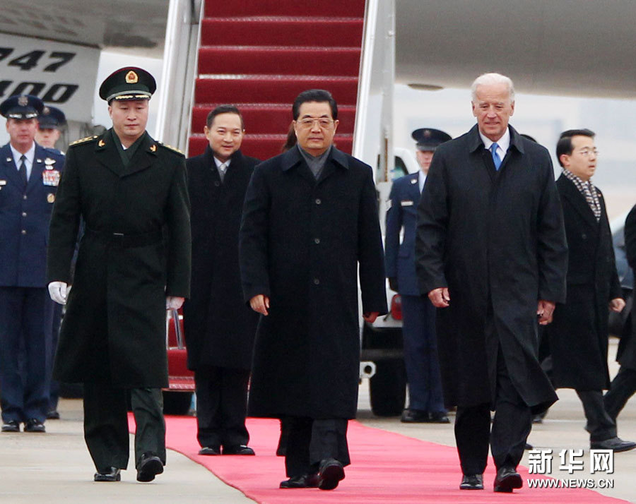 当地时间1月18日,中国国家主席胡锦涛乘专机抵达华盛顿安德鲁斯空军基地,开始对美国进行国事访问。新华社记者 兰红光 摄