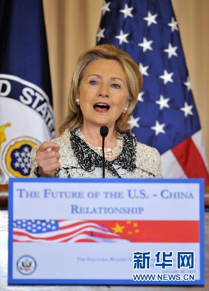 1月14日,在美国首都华盛顿国务院,美国国务卿希拉里·克林顿就美中关系未来发表演讲。 新华社记者 张军 摄