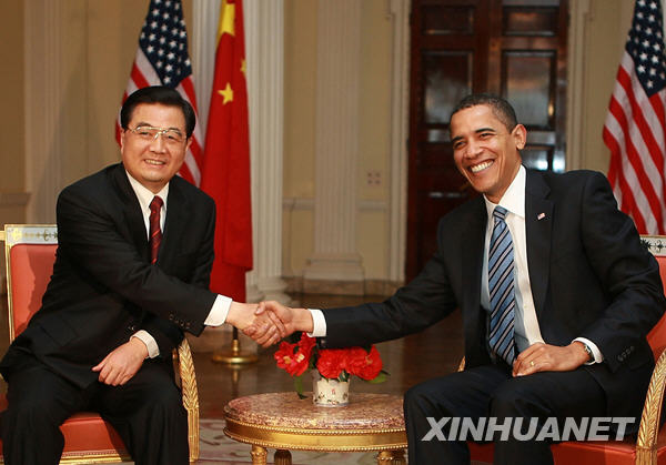 国家主席胡锦涛2009年4月1日在伦敦会见美国总统奥巴马。两国元首就中美关系和共同关心的重大问题广泛交换意见,双方一致同意共同努力建设21世纪积极合作全面的中美关系。