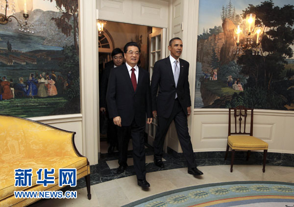 奥巴马对胡锦涛来美国进行国事访问表示热烈欢迎。两国元首积极评价中美关系取得的进展,表示愿意通过这次访问进一步推动积极合作全面的中美关系向前发展。
