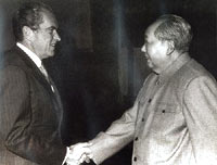 尼克松总统于二月二十一日会见了中国共产党主席毛泽东。两位领导人就中美关系和国际事务认真、坦率地交换了意见。