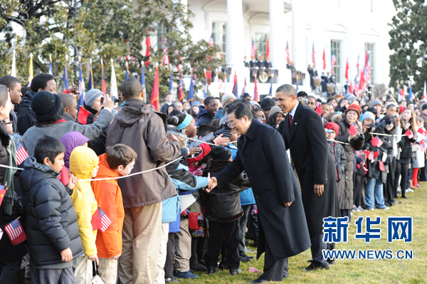 1月19日,美国总统奥巴马在华盛顿白宫举行隆重仪式,欢迎中国国家主席胡锦涛对美国进行国事访问。新华社记者黄敬文摄