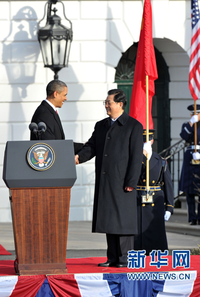 1月19日,美国总统奥巴马在华盛顿白宫举行隆重仪式,欢迎中国国家主席胡锦涛对美国进行国事访问。新华社记者李学仁摄