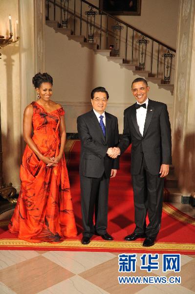 1月19日,中国国家主席胡锦涛在白宫出席美国总统奥巴马举行的欢迎宴会。 新华社记者黄敬文摄