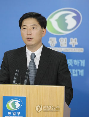 资料图片:统一部发言人千海成(韩联社)