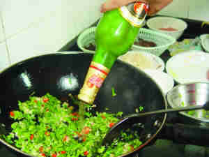 4 倒入剩下的半瓶啤酒炒匀煮沸,盛起锅内配料,汤汁留至锅中待用。