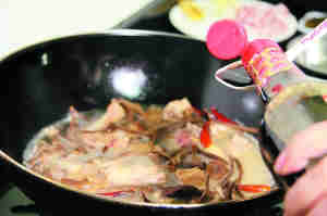 5 加入1/3汤匙盐、2汤匙海天海鲜酱油和1/2汤匙白糖调味。