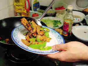 6 加入1/3汤匙鸡粉、1汤匙海天铁强化金标生抽和1/2汤匙白糖调味,即可上碟。