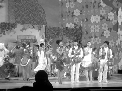 舞台升降有创意旭日阳刚歌曲中“盖楼房”