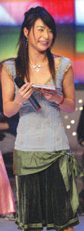 郭晶晶这次就选择了腰带装饰。可是她也有失误,就是过于自信地没有选择一件连身裙,而是自己“特地”搭配了一下,结果就是湖绿色的雪纺上衣过于修长,一下子把黄金分割破坏掉,变得上下身一般长;而绿色丝绒裙的腰带设计更强调了这一效果,于是上身比下身还要长了。这里也给大家提个醒:如果没有专门的造型师搭配,而自己又是非专业人士,最好还是老老实实地选择连身晚装裙,千万别自以为是地“精心”搭配。