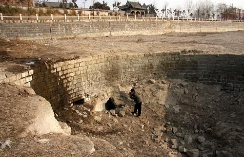 1月27日在山东枣庄市市中区拍摄的干涸的泉眼。新华社发(孙中喆 摄)