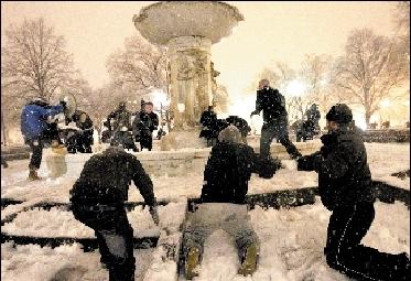 26日,华盛顿市民在大雪中打雪仗。图/人民图片