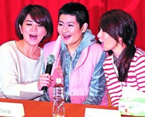 1月19日,Selina在好姐妹Hebe和Ella的陪伴下,召开记者会