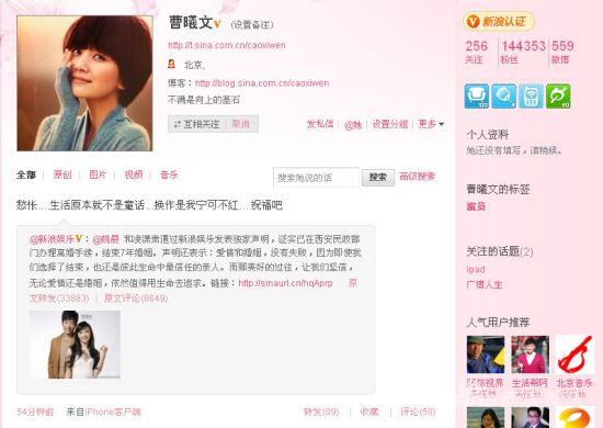 姚晨凌萧肃离婚 潘石屹曹曦文发微博感慨多(图)