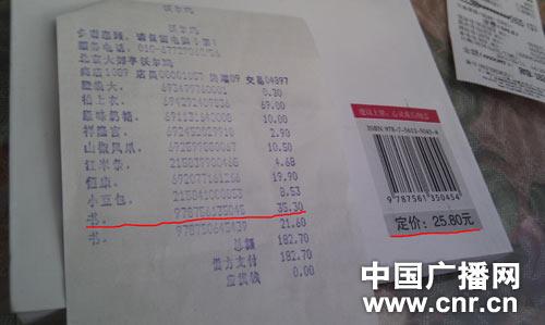 吕女士:我平时是不对这小票的,包括这段时间媒体报的也挺多的,但也没太留意。我就一扫,看这本书好像这个价格有点高标价好像没这么高,结果这一对,这本书的标价是25块8,但是一扫出来是35块3。