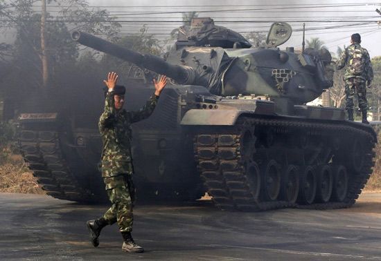 资料图:泰国军队M60主战坦克进驻边界附近的甘塔拉叻县。
